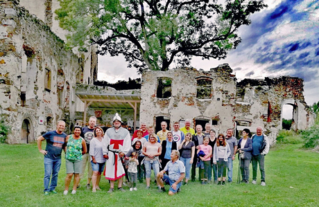 Am Samstag, 29.08.2020 um 15.00 Uhr trafen wir uns beim Gemeindeamt. Von dort wanderten wir in die Langensteiner Donauauen zur Burgruine, bei der uns Ritter Robert von Spilberg empfangen hat. Mit ihm gingen wir auf eine lange, geschichtsträchtige Zeitreise, von der Entstehung der Burg bis heute. Wir waren begeistert von seiner Führung und von dem, was die "Freude der Burgruine Spilberg" bereits alles geleistet haben. Oben am 36 Meter hohen Bergfried hatten wird einen wunderschönen Rundumblick, auch vom Keller mit dem renovierten Stiegenabgang und vom Burgverlies waren wir beeindruckt. Laut Vereinsobmann Wilhelm Wolkerstorfer sind freiwillige Helfer für die weiteren Sanierungsarbeiten jederzeit gerne willkommen. Am Ende waren wir uns alle einig, dass die Burgruine Spilberg unbedingt einen Besuch wert ist! |